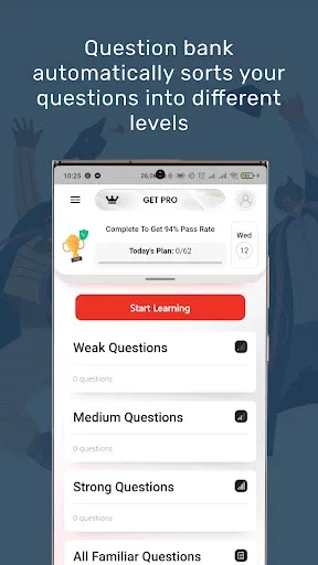 • Mock test: mock test simulates the real test format. When you finish the test you will see your score and review all the questions.