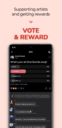 Connect with fellow fans in your dedicated community space, away from the prying eyes of antis and haters, and openly enjoy your stan lifestyle without the fear of being judged. Make new friends, share streaming and comeback goals, and maybe even get a reply from some of your fave artists!*