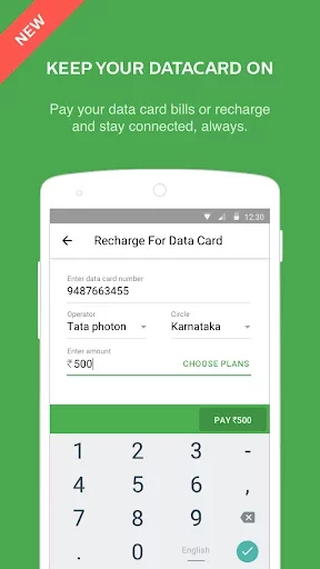 - Use saved cards to make even faster recharges and postpaid bill payments