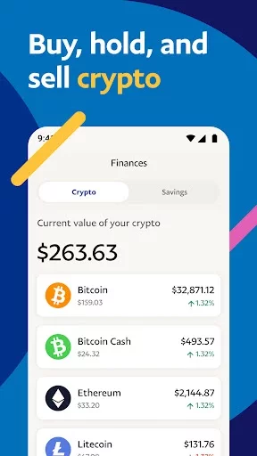• Buy, sell and hold Bitcoin, Ethereum, Bitcoin Cash and Litecoin in the PayPal app.