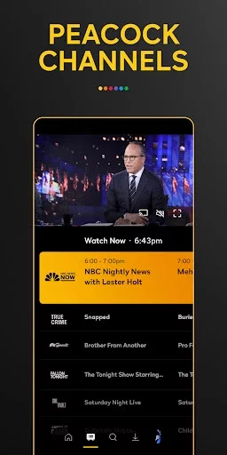 • Peacock Channels – playing your favorite entertainment and news. Scroll less and watch more with the SNL Vault, Fallon Tonight, NBC Sports on Peacock, WWE, NBC News NOW, TODAY All Day, True Crime, and Dateline 24/7.