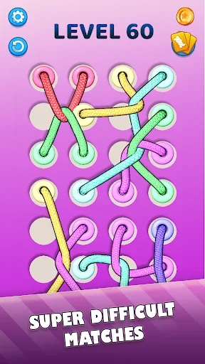 This game brings complete charm with beautiful graphics and intuitive mechanics that make you feel like a master at untangling buttons. Your mission is to solve the knots and free the two ends of the rope with careful and precise moves. Plan and strategize your moves skillfully and conquer the game at each level.