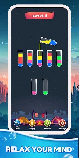 ● If you get stuck when playing a water sort puzzle, you can restart at any time instead of stressful trying.