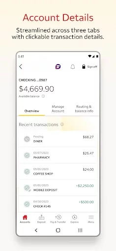 • Instantly view the processing deposit in your account