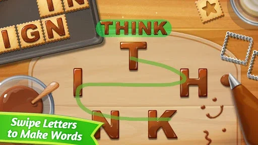 • Swipe the alphabet cookies to complete the crossword grid on the baking pan.